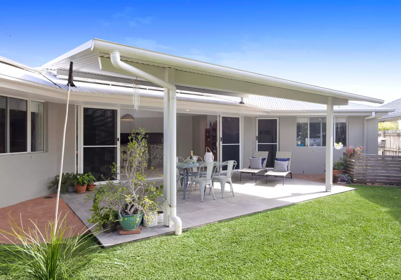 Step outside to the covered patio area, ideal for entertaining, and overlook the lush mature garden. There's ample space to add a swimming pool, but also no need as the ocean shores await. Boasting a large enclosed wraparound garden featuring mature shrubs, a garden shed, and raised garden beds perfect for cultivating fresh produce.