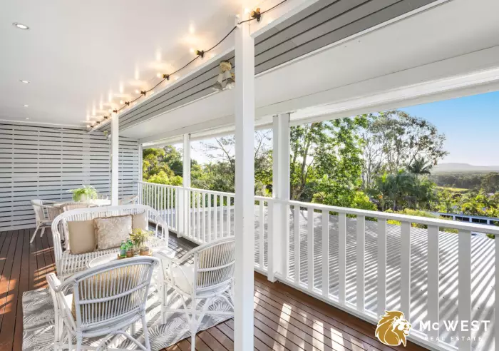 Upstairs the Hamptons-inspired country Kitchen offers a culinary delight, offering loads of storage, stone bench tops, and a serving hatch to the expansive alfresco area overlooking the hinterland escarpment. The open-plan design effortlessly connects the Kitchen, Dining and Lounge area. The living area is further complemented by beautiful French stack doors which run parallel on either side of the living space. Allowing gorgeous framed light to filter in, and making the most of the fresh air, and coastal breezes when open. These doors also open out to two stunning outdoor entertainment spaces on either side of the property. At the front end, an elevated enclosed patio with views over the hinterland, a place that transcends serenity and instils a sense of peace. At the rear, an expansive deck area, providing multiple entertainment zones and endless opportunity for relaxion and gatherings with family and friends.